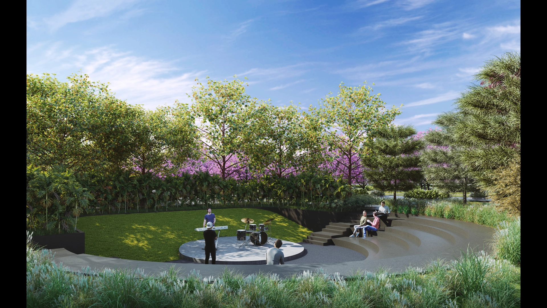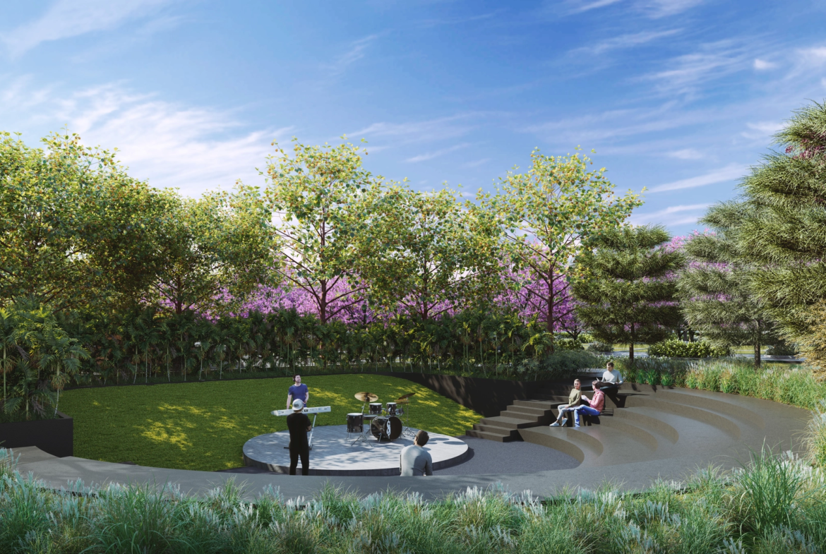Outdoor gym, pet park, amphitheater, badminton court, and more.