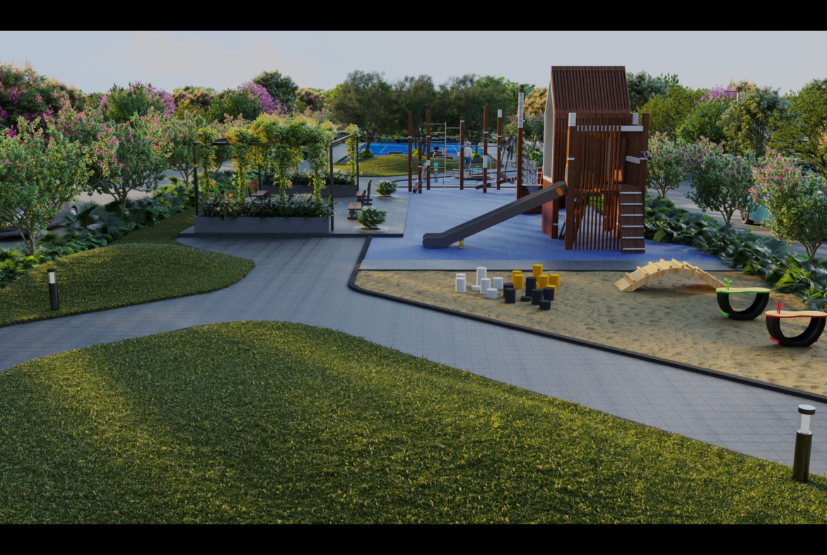 Landscaped gardens, jogging tracks, and community parks.