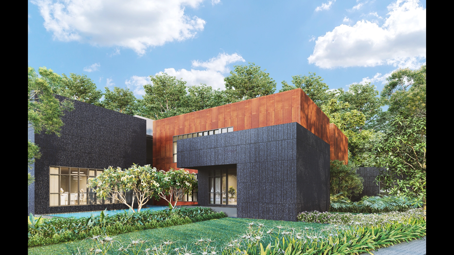 Features a thoughtfully planned Miyawaki forest, promoting biodiversity and environmental sustainability.