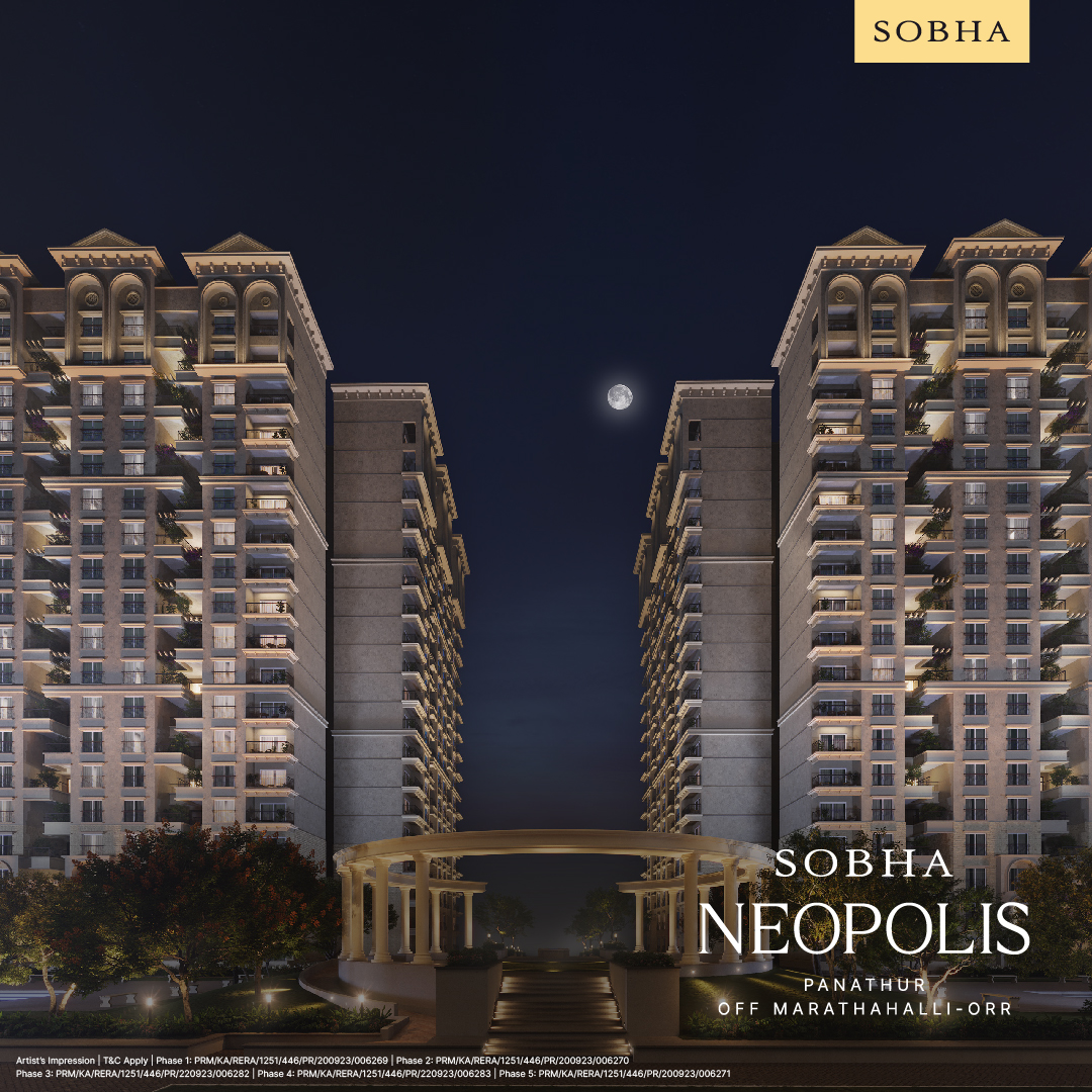 Sobha Neopolis enjoys a prime location in Panathur, close to Bengaluru’s bustling IT corridors like Whitefield and Marathahalli. With easy access to Outer Ring Road, the property is just a short drive from renowned schools, healthcare facilities, and shopping hubs. The serene surroundings combined with urban connectivity make it a sought-after destination for families and professionals alike.
