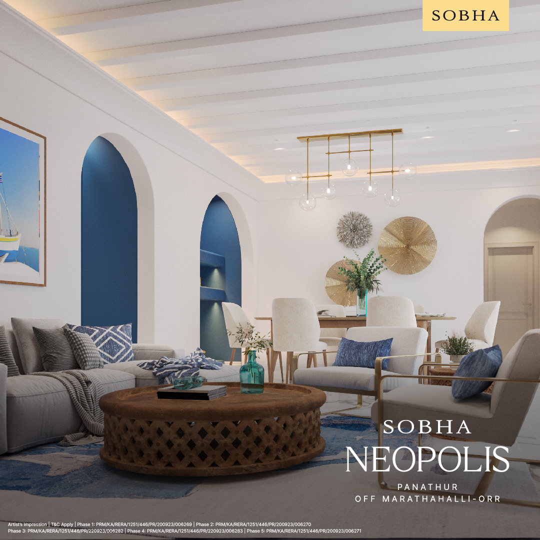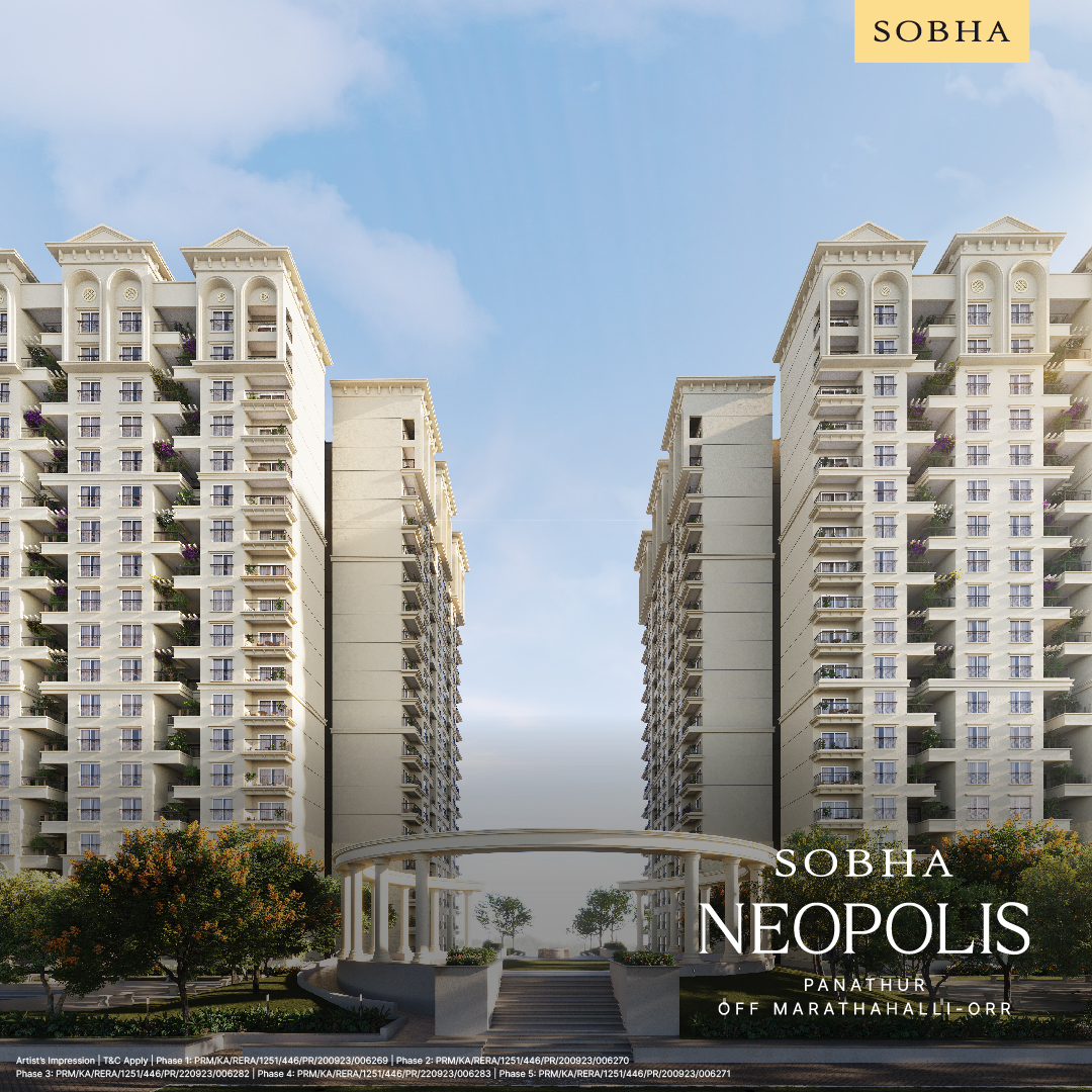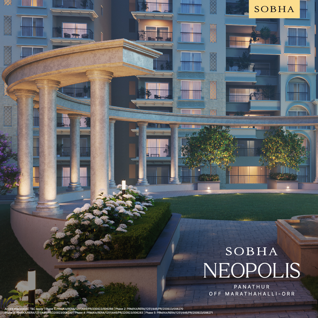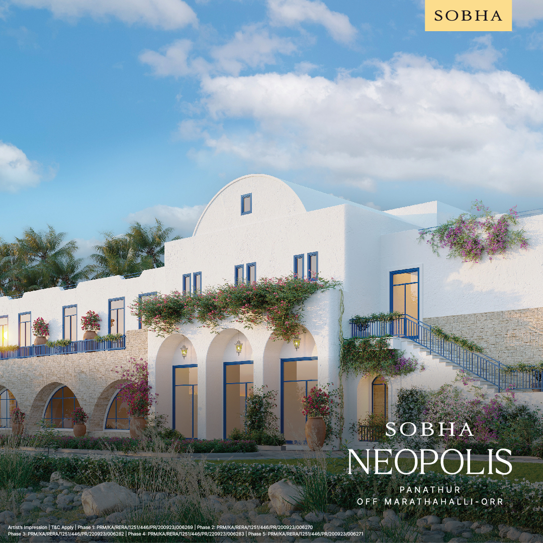 Welcome to Sobha Neopolis, a luxurious residential haven in Panathur, Bengaluru. Designed with meticulous attention to detail, this ultra-modern project offers 3 BHK and 4 BHK abodes spread across a sprawling 25 acres. Sobha Neopolis features timeless Greek architecture with Santorini-style elements, 78% open spaces, and three majestic clubhouses spanning 77,850 sq. ft.. With over 35+ curated amenities, it offers an unparalleled lifestyle for discerning buyers.